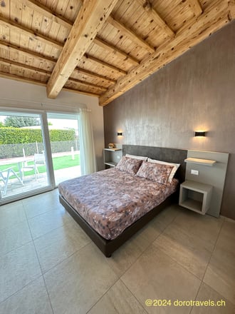Christine, the owner of I Delfini, made us feel welcome and comfortable right away and looks after the B&B with great care and passion. Her rooms are sparkling clean and spacious. There are enough storage options for suitcases and smaller items, mosquito netting, and a private terrace for each room. Plenty of water at a constant temperature in the shower and cozy heating during the cooler months: wonderful! We enjoyed delicious and generous breakfasts, including excellent croissants. Many products are home-made.