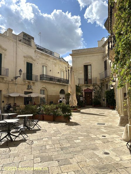Palazzo de Noha, 4* Boutique Hotel in the old town. A very tastefully restored 15th century palace and courtyard. Intimate rooms, contemporary design, art on display, a beautiful rooftop terrace including a small pool, excellent breakfast, staff very helpful with parking. Via Gulielmo Paladini, 47, Lecce: www.palazzodenoha.it.