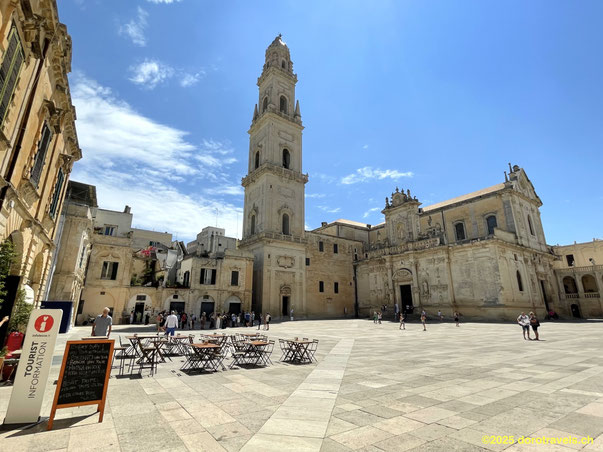Lecce cathedral (Duomo di Lecce), rebuilt in 1230, and its impressive square, lined with historic buildings. Its northern façade considered a masterpiece of Baroque art.