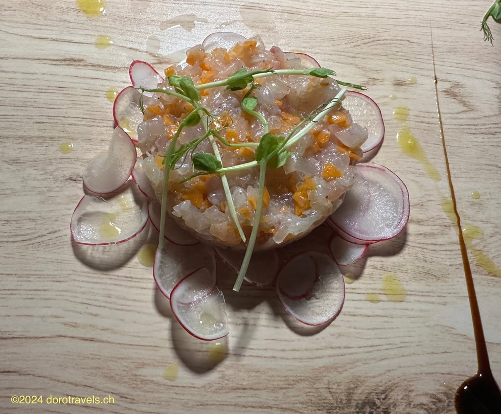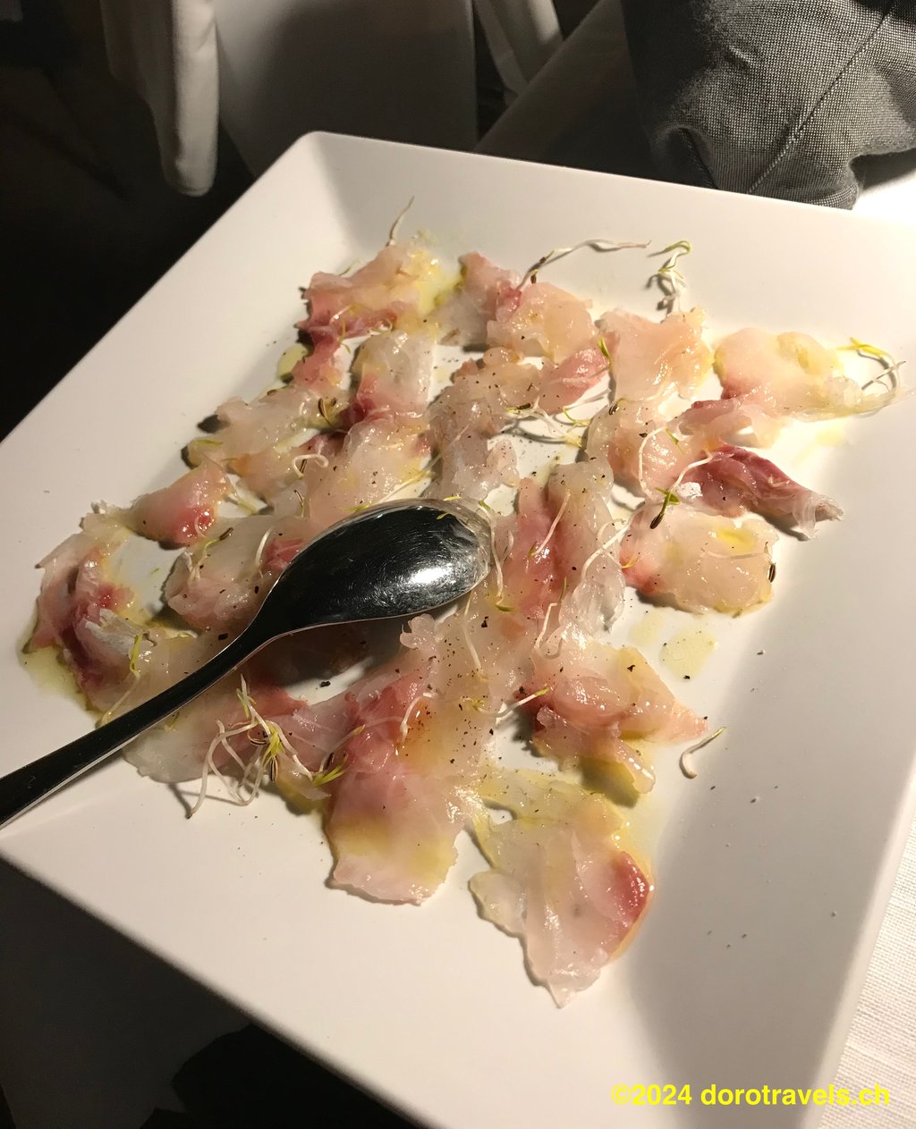 A stone’s throw from the harbor, this is where locals devour huge platters of raw seafood and crustaceans. They don’t ask for the menu but let Pasquale, the owner, explain the specials of the day. Pasquale is passionate about the quality of the food and the service at Pescandalo. Do not expect simple spaghetti vongole or deep fried seafood here. Vito, the chef and co-owner, is very creative and surprises with new pasta with seafood and fish combinations regularly. Some of my favorite dishes are eggplant stuffed with fish, raw giant clams (noci), baked oysters (not on the menu, but usually available), local tuna tartar (or some other type of fish tartar), or whole fish of the day prepared in various ways. Pescandalo is often fully booked, especially on weekends and during warm months when tables are set outside under the bougainvilla. Italians come here to enjoy the superbly fresh products from the sea and have a great time. I love to see all this happiness going on around me. Occasionally, it makes time stand still and reminds me what a magical place Italy can be. All this at beautiful Piazza Plebiscito romantically lit up at night.