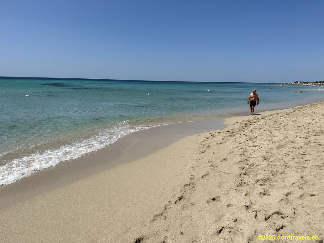 Torre Lapillo a bit further north, is even more relaxed than Porto Cesareo. Its long, fine-sand beaches backed by protected dunes