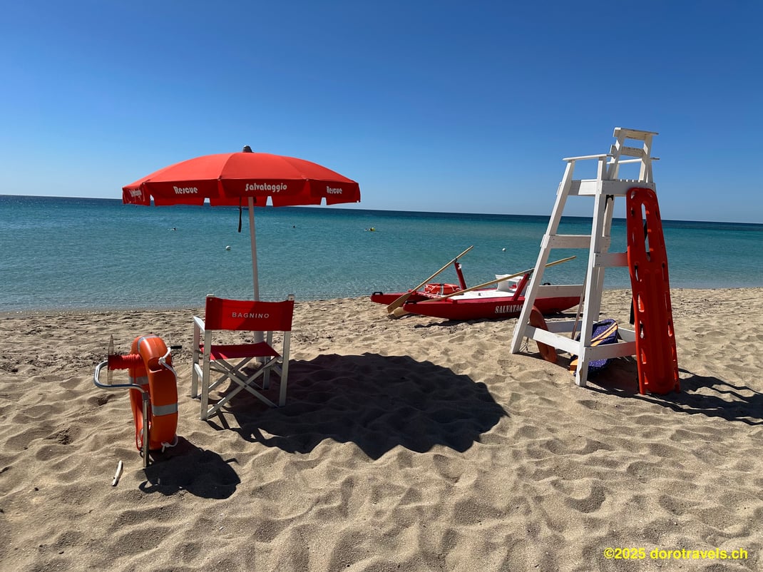 and unattended parking. In late September of 2025 a parasol (ombrellone) with 2 loungers (lettini) cost €30 at a typical lido in Torre Lapillo. There are also several free public beaches without facilities or services. Please inquire at your hotel which lido may be best for you.