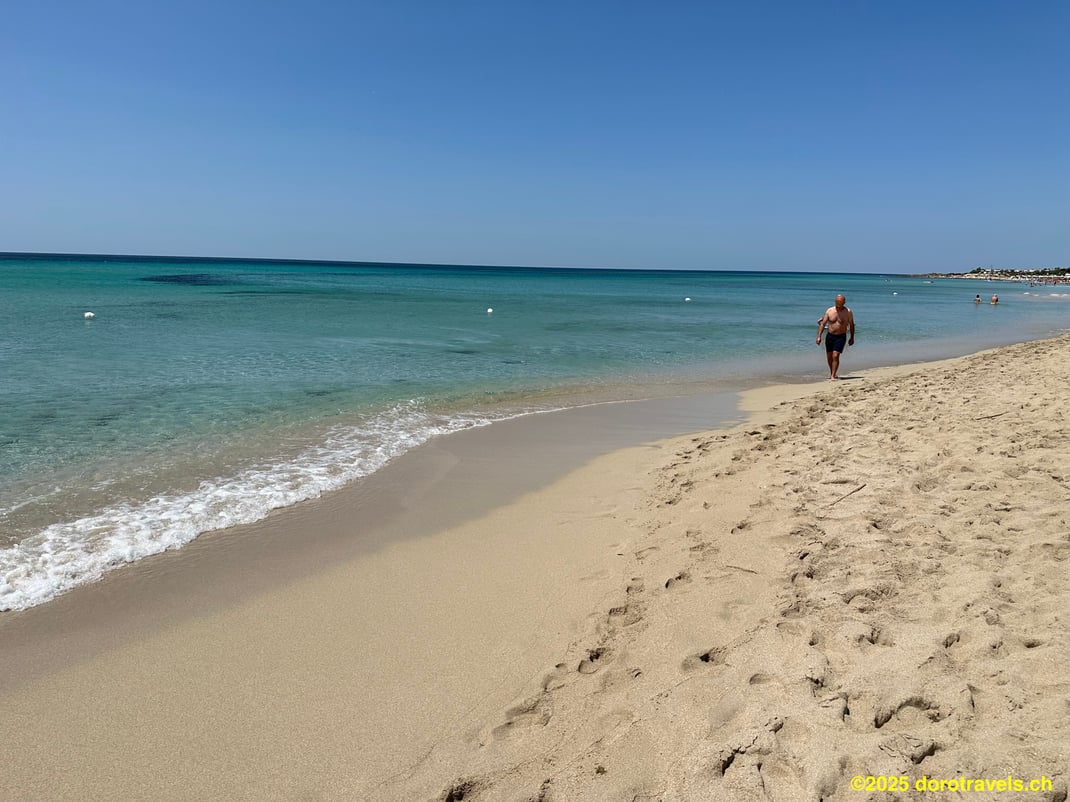 Crystal-clear waters and sandy beaches are the main attraction in Porto Cesareo and its township of Torre Lapillo. Locals and visitors alike appreciate the shallow and tranquil water ideal for families and swimming, the natural beauty of the dunes along the coastline, and the local seafood. Italian is still the prevalent language amongst tourists here in the deep south of Puglia where prices are lower than further north. If you pick the right time to visit, you can enjoy these advantages without the crowds (please see details below*).