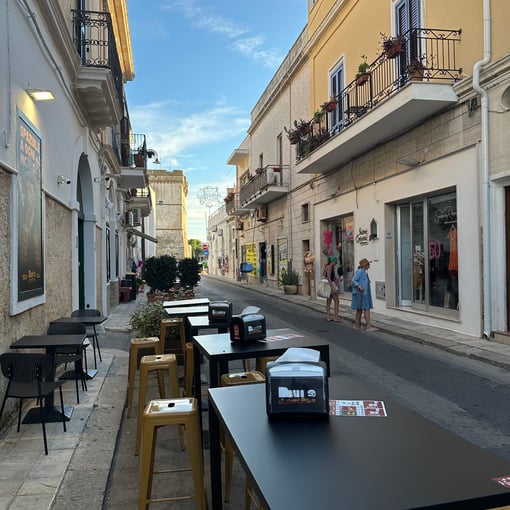 Torre Lapillo consists mostly of holiday apartments and B&Bs. There are food shops, 2 small supermarkets, an ice-cream parlor,