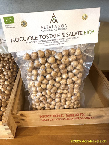 Altalanga Azienda Agricola produces this healthy hazelnut organically and sells it in a very friendly shop in the heart of Alba. The nuts are sold vacuum packed, and I am always amazed at how fresh and crunchy they stay this way for many months.