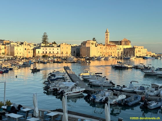 The first rays of sunshine on the old town of Trani, Puglia in early October